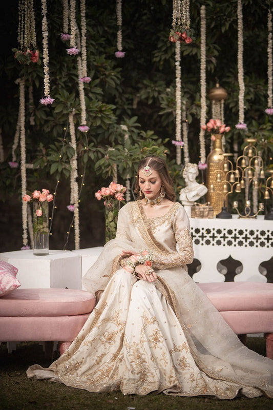 Embodied Elegance in Ivory and Gold. An ethereal ensemble featuring an organza shirt and dupatta...