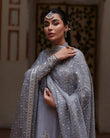 Desi Wedding Dress in a Kameez Sharara style achieves the final classic look when paired with a delicate and diaphanous organza dupatta. Embellished borders, silver details, and mirror work make this dupatta a perfect choice to pair with the Sharara Dress.