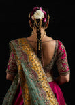 Make a statement with our stunning deep pink pure satin silk lenga, beautifully adorned with hand-embellished bunches and a crisp border. The fully embellished elbow-length blouse adds elegance, while the pure organza dupatta features playful pops of color that elevate the look. Perfect for any celebration, this ensemble seamlessly blends tradition with contemporary flair!
