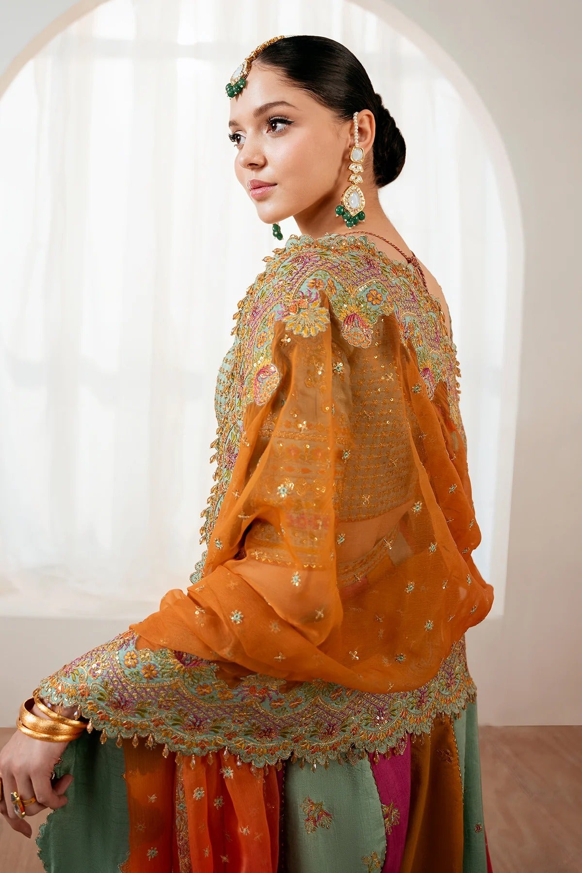Embroidered handmade raw silk front mustard (0.75 yards)
