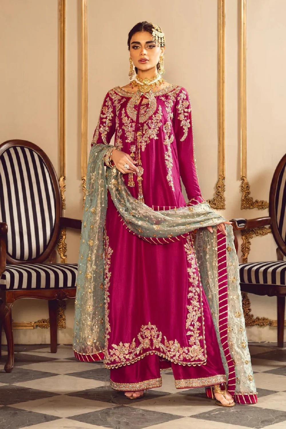 Melodic Tassels a Symphony of Opulence is crafted with meticulous care from pure raw silk, the shirt and pants radiate a lustrous sheen and boast a luxurious texture that enhances the overall allure of the ensemble. Melodic Tassels, with its Aqua Green dupatta, invites you to embrace the enchantment of color and texture. It is an ode to individuality and style, where every element comes together to form a harmonious composition, a melody that resonates with the modern spirit while paying homage to the richness of tradition.